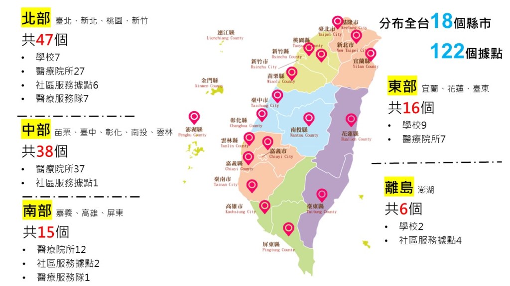 2024年,展臂閱讀已累積超過全台超過122個合作單位受益,共同推廣學齡前閱讀,包含83個醫療院所、8支醫療服務隊、18所學校幼兒園、13處社區服務據點。