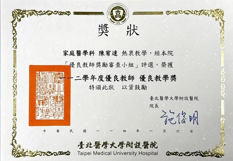 | 優良教師獎 | 臺北醫學大學附設醫院 | |
