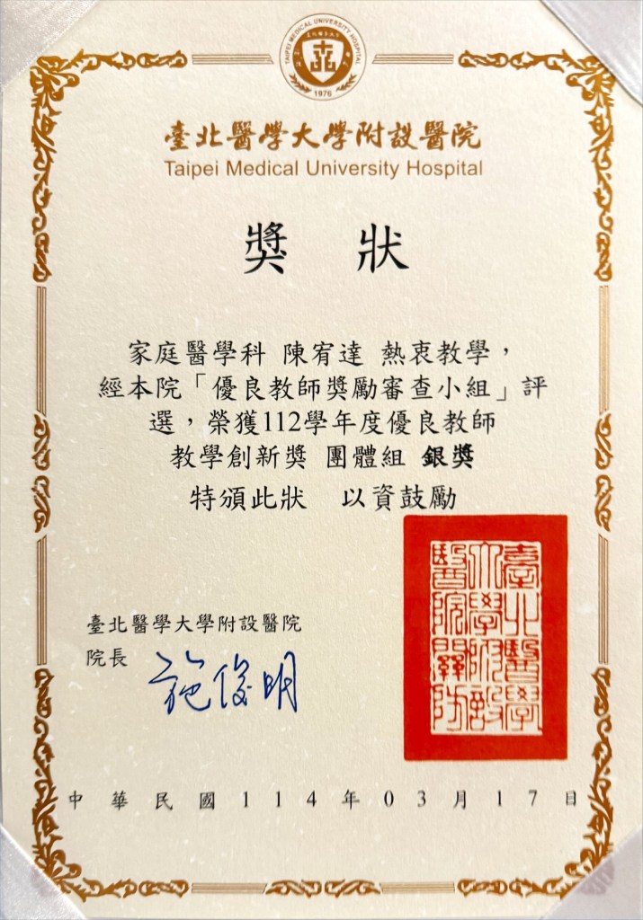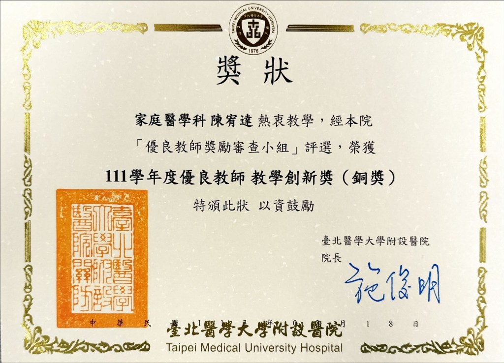 | 教學創新獎(銅獎) | 臺北醫學大學附設醫院 | |