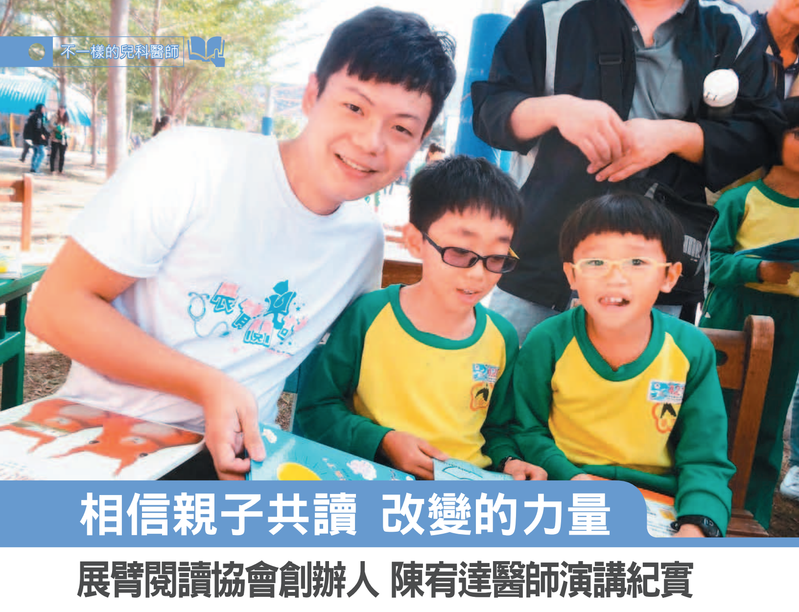 冬日的林口,連綿細雨和灰濛濛的天空,冷冽的氣溫讓人瑟縮;然而,長庚兒童醫療大樓的會議室,卻異常的溫暖,106年11月24日舉辦了一場演講,邀請展臂閱讀協會的創辦人陳宥達醫師。場內座位坐滿了住院醫師,衛福部前部長林奏延教授和兒科醫學會前理事長黃璟隆教授也連袂出席,爆滿的會議室讓走道顯得狹小難行,門口還持續湧進幾位醫師,一看已人滿為患,只能坐在門口走道聽講。