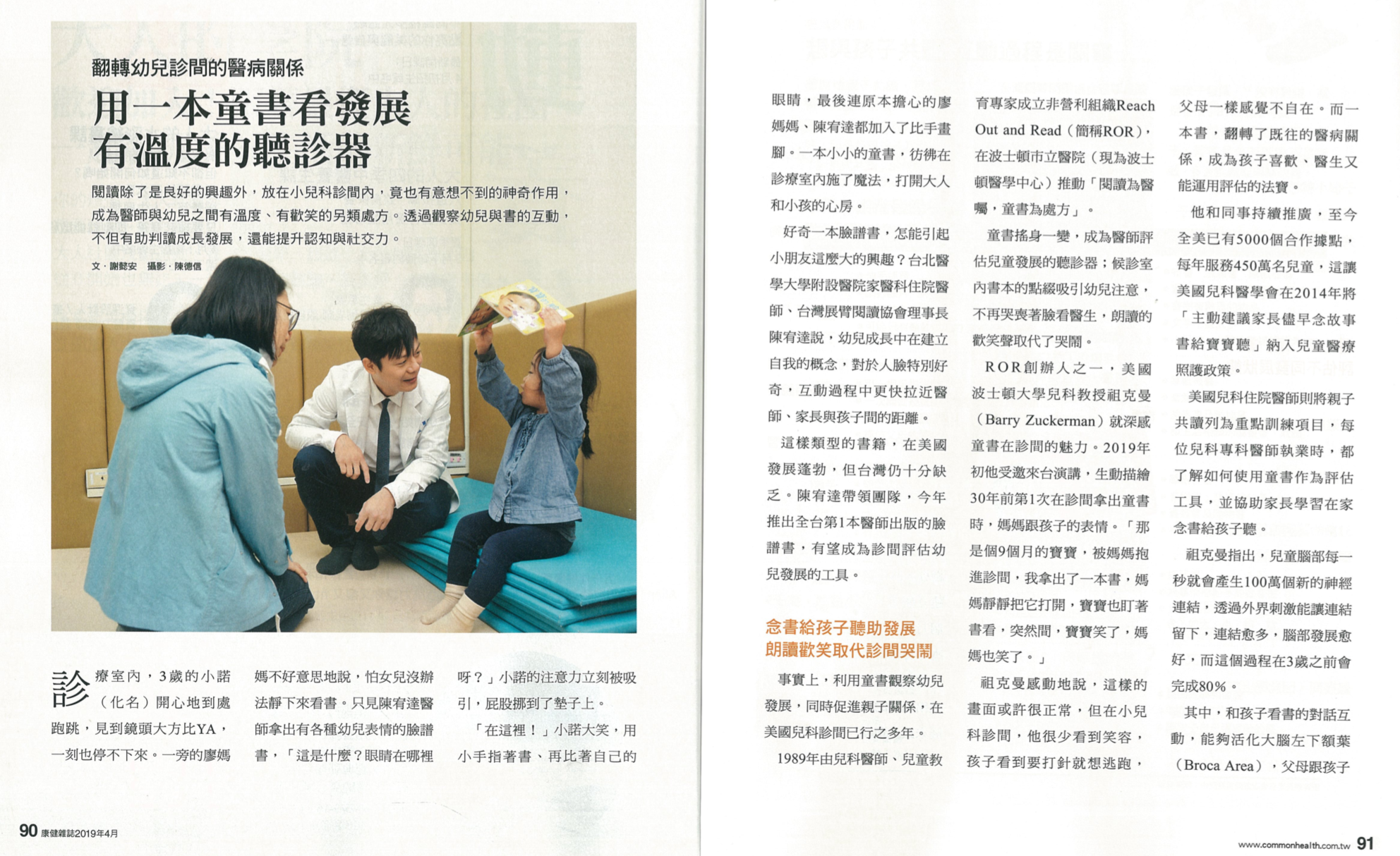 ROR創辦人之一,美國波士頓大學兒科教授祖克曼(Barry Zuckerman)就深感童書在診間的魅力。2019年初他受邀來台演講,生動刻畫30年前第一次在診間拿出童書時,媽媽跟孩子的表情。