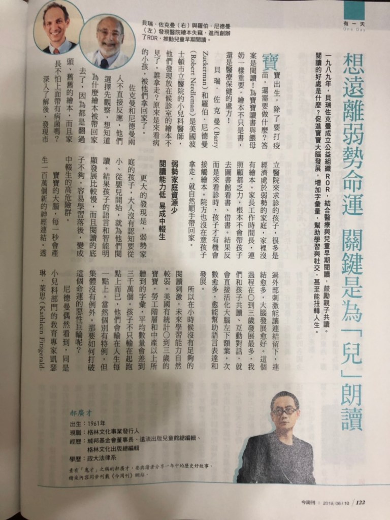 一九八九年,貝瑞佐克曼成立公益組織ROR,結合醫療與兒童早期閱讀,鼓勵親子共讀。
