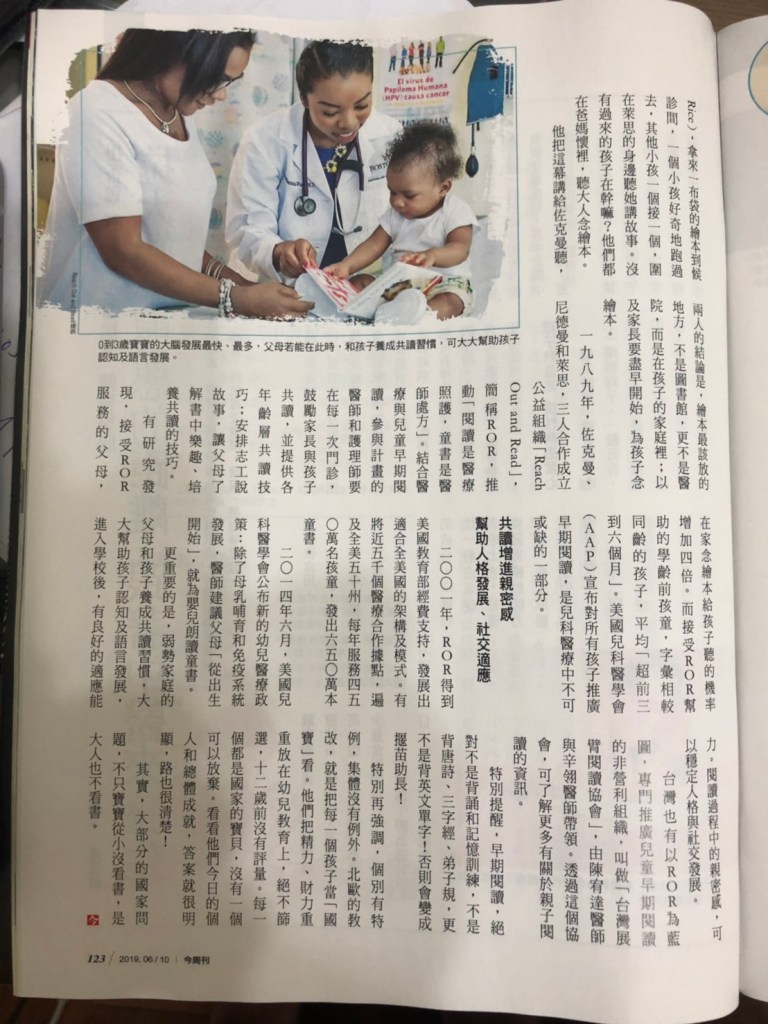 台灣也有以ROR為藍圖,專門推廣兒童早期閱讀的非營利組織,叫做「台灣展臂閱讀協會」,由陳宥達醫師與辛翎醫師帶領。透過這個協會,可了解更多有關於親子閱讀的資訊。