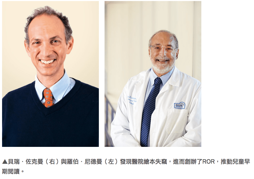 貝瑞.佐克曼(Barry Zuckerman)和羅伯.尼德曼(Robert Needleman)是美國波士頓市立醫院的小兒科醫師,他們發現放在候診室的繪本不見了。誰拿走?原來是來看病的小孩,被他們拿回家了。