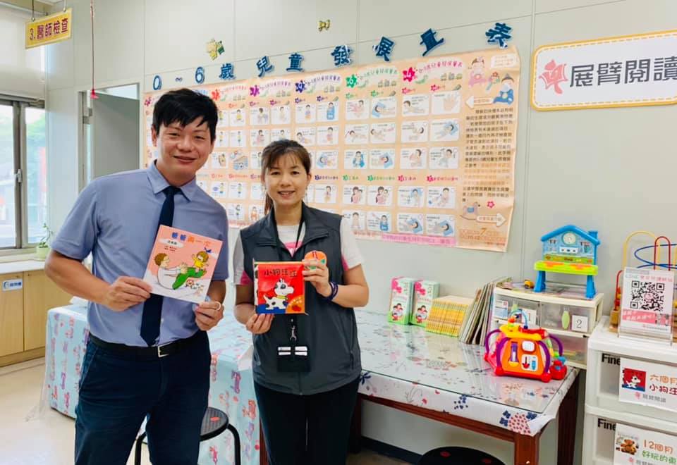 中秋節展臂持續支持醫療院所推廣親子共讀!今年與苗栗縣政府衛生局攜手合作「親子共讀迎向幸福」計畫,2020年除了協助苗栗4所衛生所更新候診間親子共讀角,展臂閱讀協會更提供近1000本繪本作為醫師評估發展的工具,並給予需要的家庭。 可愛的閱讀角讓等看病的家長及小孩有志工導讀陪伴,不再害怕來打預防針![]()