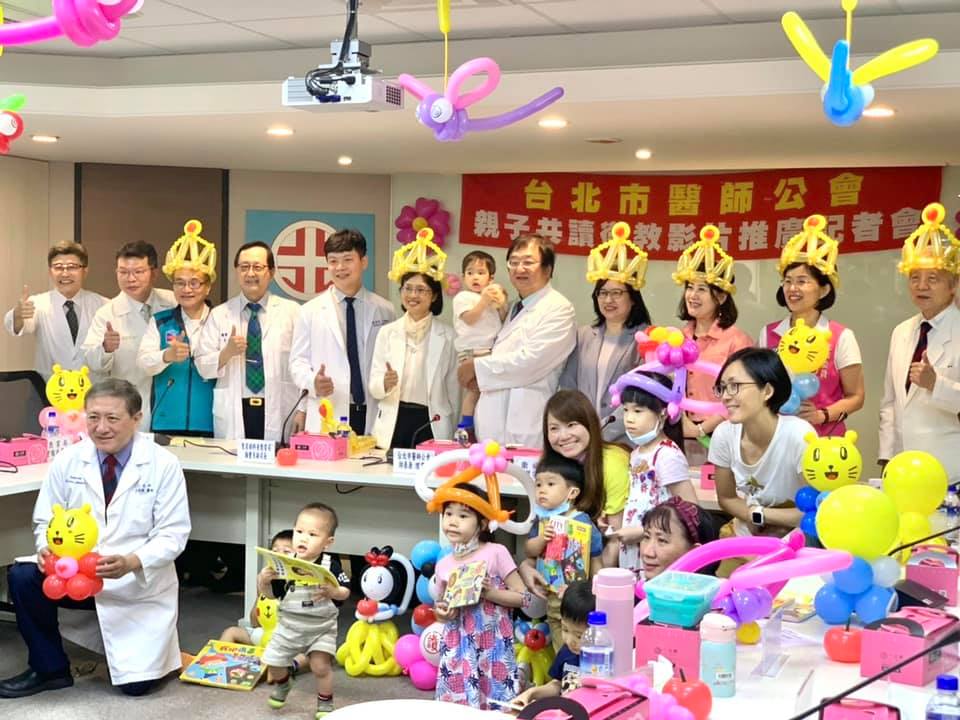 台北市醫師公會「親子共讀分齡影片」發佈記者會,台灣展臂閱讀協會特別贈送親子一套「醫師精選繪本」,主題包含防疫病