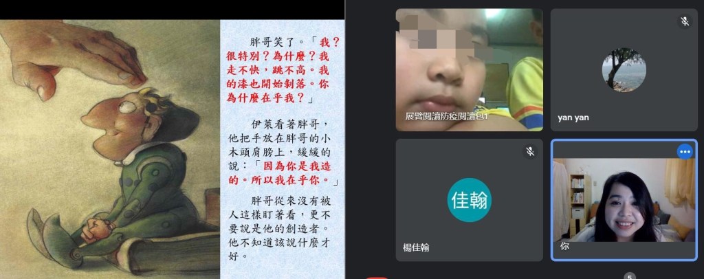 小燕子老師:影片放映中,我會一個階段一個階段停下來跟小朋友互動,也順便考考小朋友剛剛看到了什麼聽到了什麼。他們互動的非常的好,記性也很好,都能夠很清楚的知道剛剛看到了什麼,是什麼原因讓這些小動物會喜歡他們的爸爸,也讓小朋友說說他們跟爸爸的互動。
