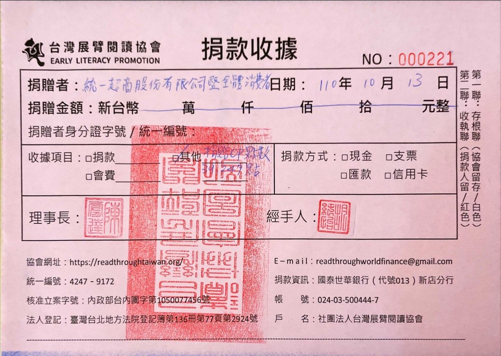 #捐點愛幸福多 感謝統一超商及支持偏鄉親子共讀推廣的好朋友們#24小時愛不打烊,此次活動期間【2021年7月1日~8月31日】總共募集了39,247點(元), 幫助我們為弱勢孩童購書金募集,點數將全數用於購置學齡前童書及繪本,讓我們醫同為改善鄉鎮弱勢孩童 #閱讀資源不平努力! 分享此文: 按一下即可分享至 X(在新視窗中開啟) X 按一下以分享至 Facebook(在新視窗中開啟) Facebook 喜歡 正在載入... 相關 發表者:社團法人台灣展臂閱讀協會 檢視 社團法人台灣展臂閱讀協會 的所有文章