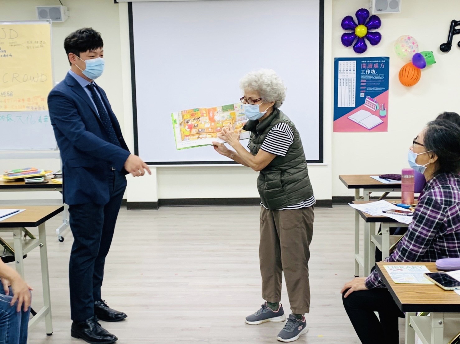基隆文化局的故事志工們都很有經驗,分享以前沒錢買童書,也可以運用手邊的素材廣告紙、裝水果的紙箱上的圖片和孩子說話,恰巧呼應前幾天國健署的親子共讀直播中談到親子共讀隨時隨地、隨手可得!