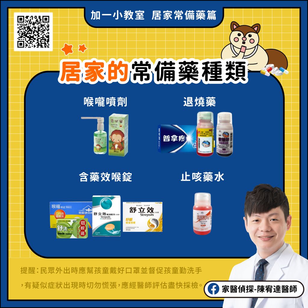 陳宥達進一步提醒,許多確診病患除高燒超過40度外,喉嚨腫痛得無法說話、進食,咳嗽咳到心肺欲裂是最常見的狀況,建議事先預備喉嚨噴劑、或具藥效的喉錠,有助於舒緩症狀;若家人確診,建議同住者除戴口罩、勤洗手外,應留意多消毒門把、並每日以1:99稀釋家用漂白水,擦拭桌面、地面,尤其無法單室隔時時,廁浴清消更須留意。
