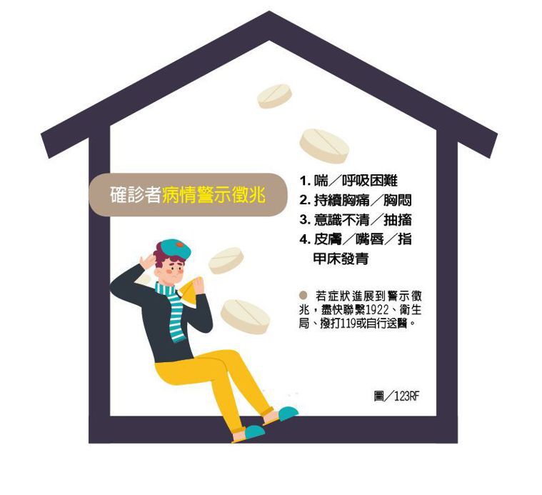 三軍總醫院汀州院區副主任謝嘉娟表示,若確診者症狀嚴重,例如咳到很喘、呼吸短促、次數過快等,擔心會出現肺炎;若意識不清、癲癇發作,或是心跳過速,胸悶、胸痛且血氧較低,無尿或尿量顯著減少,建議盡快送醫治療。