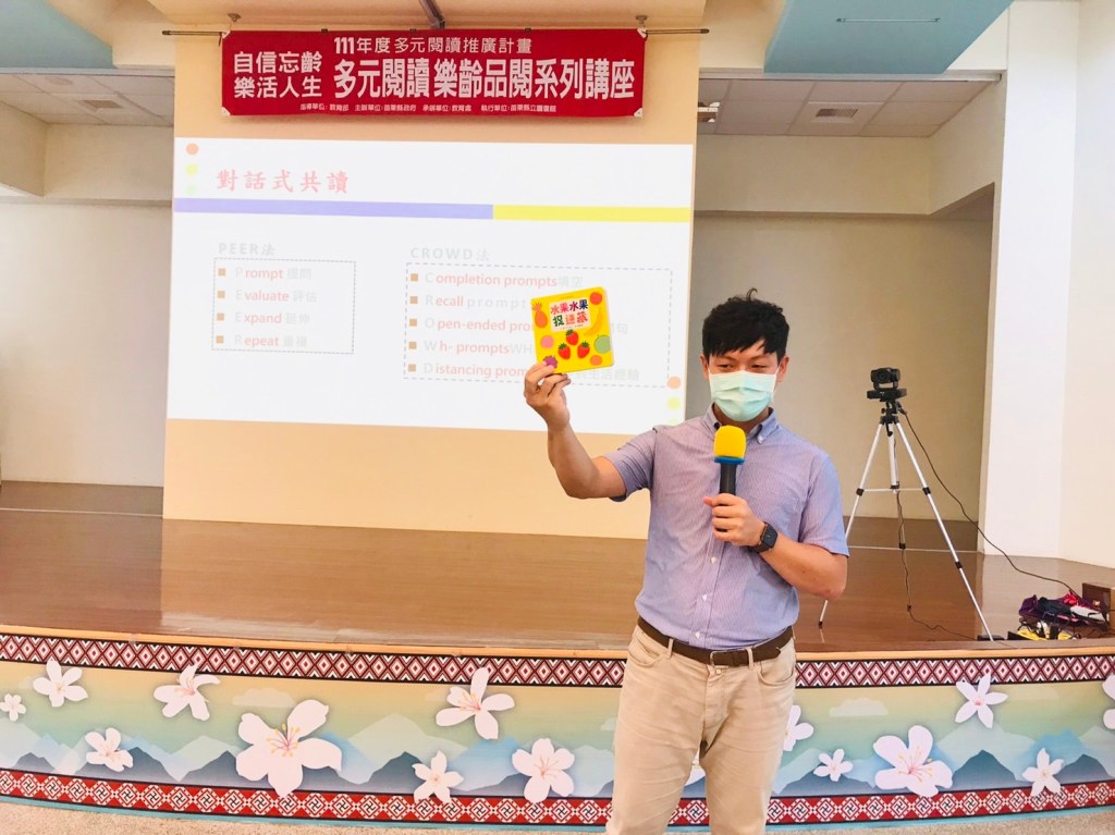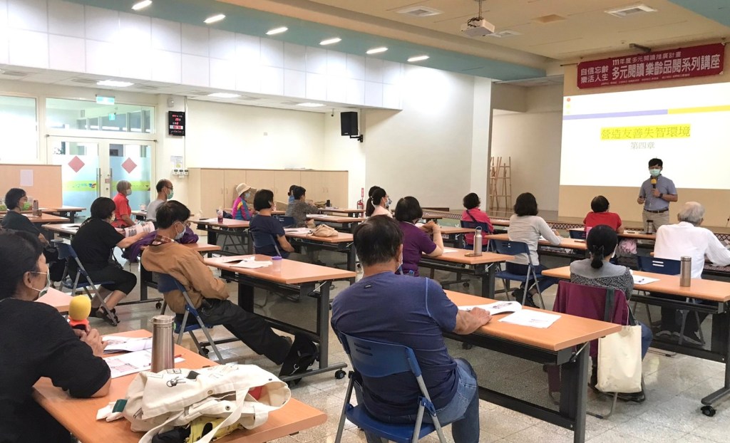 圖資科彭秀珍科長以視訊方式全程參與這場精彩且用心規劃,令聽者身、心、靈皆可收穫滿滿的講座。科長勉勵與會者除實體參與課程,共聚一堂享受閲讀的樂趣及美好,透過線上課堂也可有滿滿的收穫。
