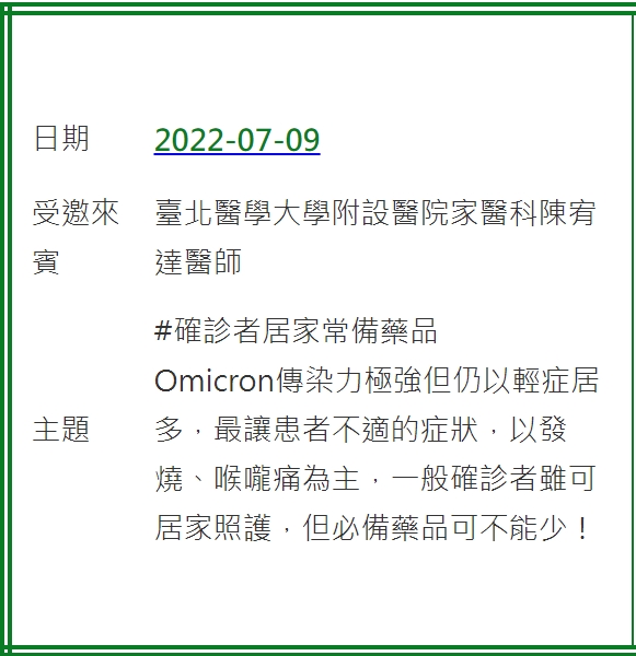 標題:確診者居家常備藥品
