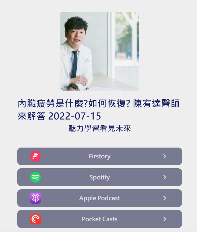 什麼是內臟疲勞?又有那些恢復的良方? 日本最近流行「內臟疲勞」這種說法,雖然在醫學上並沒有明確的定義,然而,卻有許多人都自覺有「內臟疲勞」現象,請來北醫家醫科醫師陳宥達幫我們好好解釋。