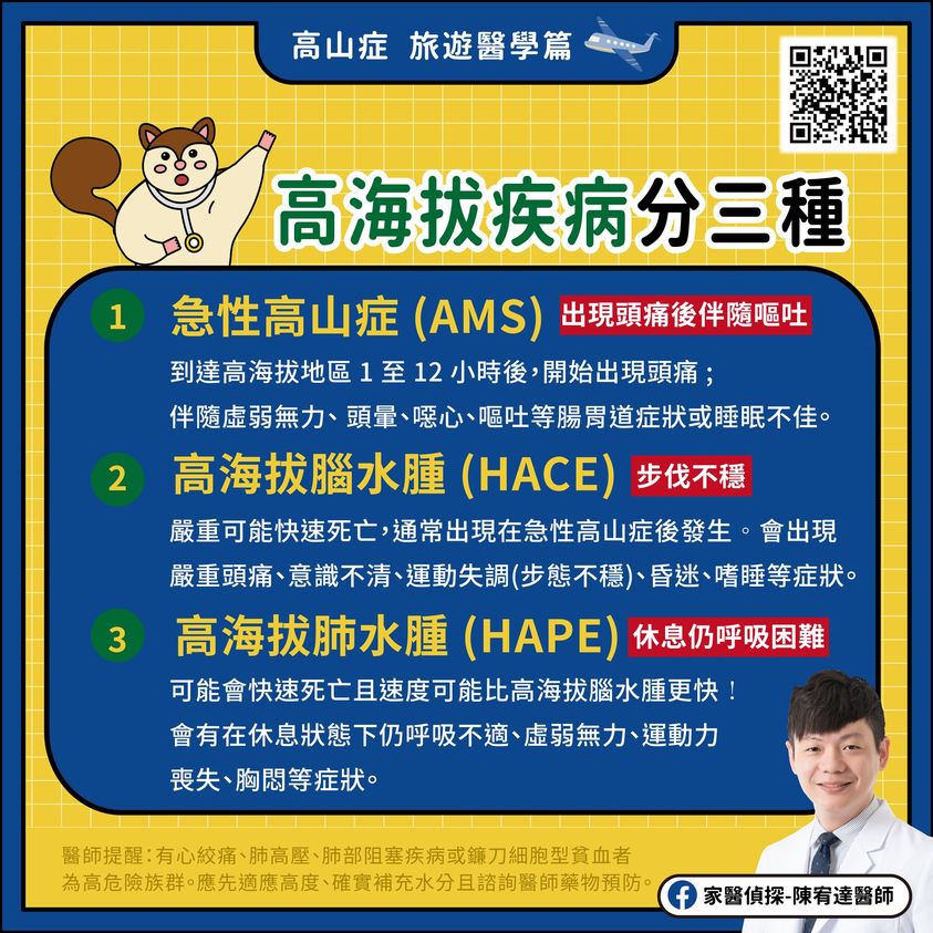 陳宥達醫師大學時代也是登山社員,爬過許多百岳,因此在這裡跟山友們分享這個實用的旅遊醫學議題!
