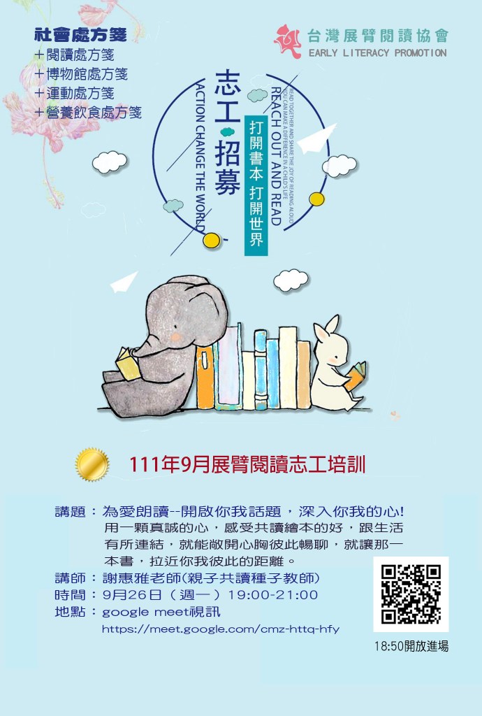 《 2022展臂閱讀 |9月志工招募培訓 》 有 “ 3 則迴響 ”