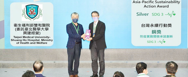 而APSAA獎項的「SDG3健康福祉」類,分別由北醫附設醫院以「Taiwan CleftNet – A model of Family-Centered Total Patient Care for Cleft Lip and Palate.」方案獲得金獎;雙和醫院則以「Ministry of Health and Welfare – Caring people and employees, Commitment to protect the community, Innovative of epidemic prevention.」獲得銀獎。