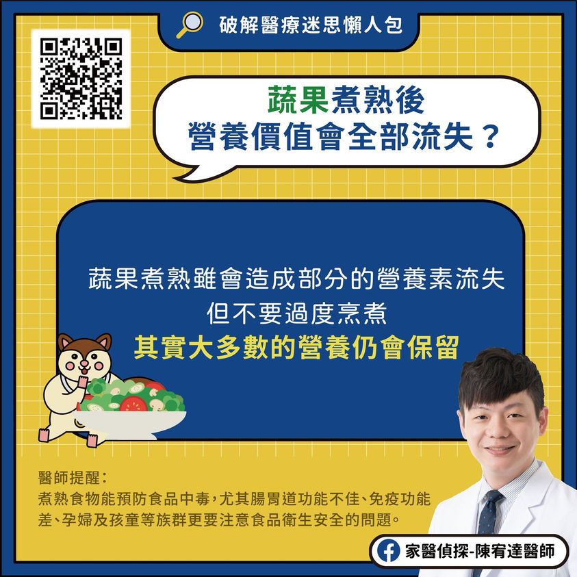 - 適度烹煮,營養保留: 煮熟蔬果可能會造成部分的營養素流失,但其實不用過度擔心。大多數的營養仍會保留在食物中,只要適度烹煮即可。