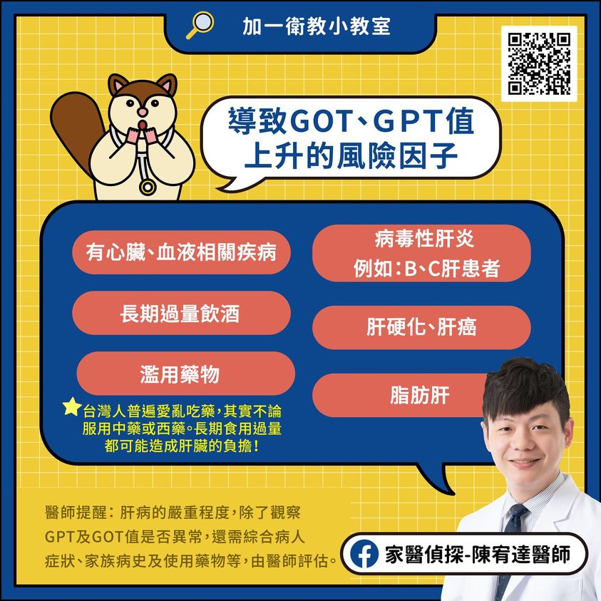 4.醫師提醒:肝病的嚴重程度,除了觀察GPT及GOT值是否異常,還需綜合病人症狀、家族病史及使用藥物等,由醫師評估。