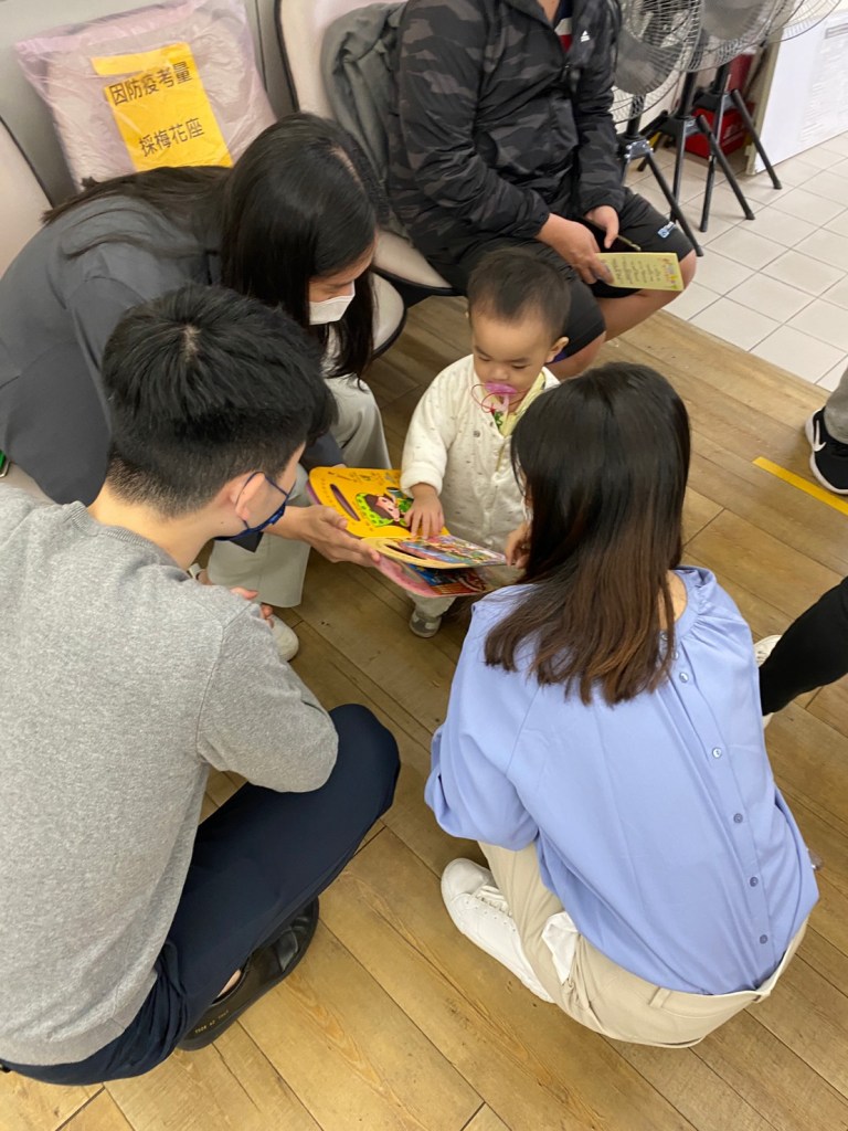 參與此次服務的賴醫師分享:衛生所適逢施打流感疫苗的時期,因此人潮比較多停留時間較久,所以可以衛教、共讀、評估的時間比較長,效果較佳。另外也有不同年齡層的個案可以評估(一歲以下與三歲),學習良多。永定附幼孩童的專注度與對書本的興趣普遍偏高,且互動對答良好。