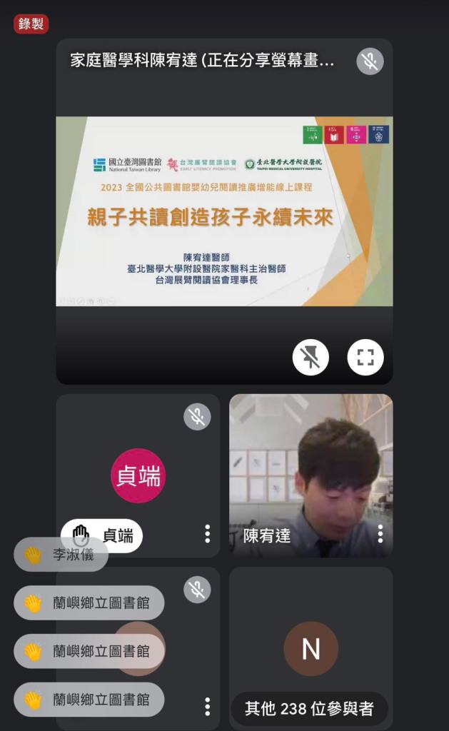 這次線上活動有超過320位來自全國幼教/嬰幼兒醫學相關從業人員、公共圖書館官員及閱讀志工參與。