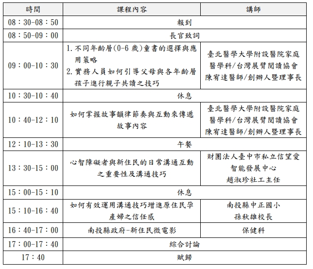 這是一個絕佳的學習機會,不論您是醫療院所人員、婦產科或小兒科志工,還是13鄉鎮市衛生所醫護人員、新住民生育保健通譯員及志工,甚至是本縣助產師(士)公會訪視人員、本縣各級學校護理人員,以及縣內本計畫實務工作者和南投縣政府衛生局人員,您都可以參加此次研習會。
