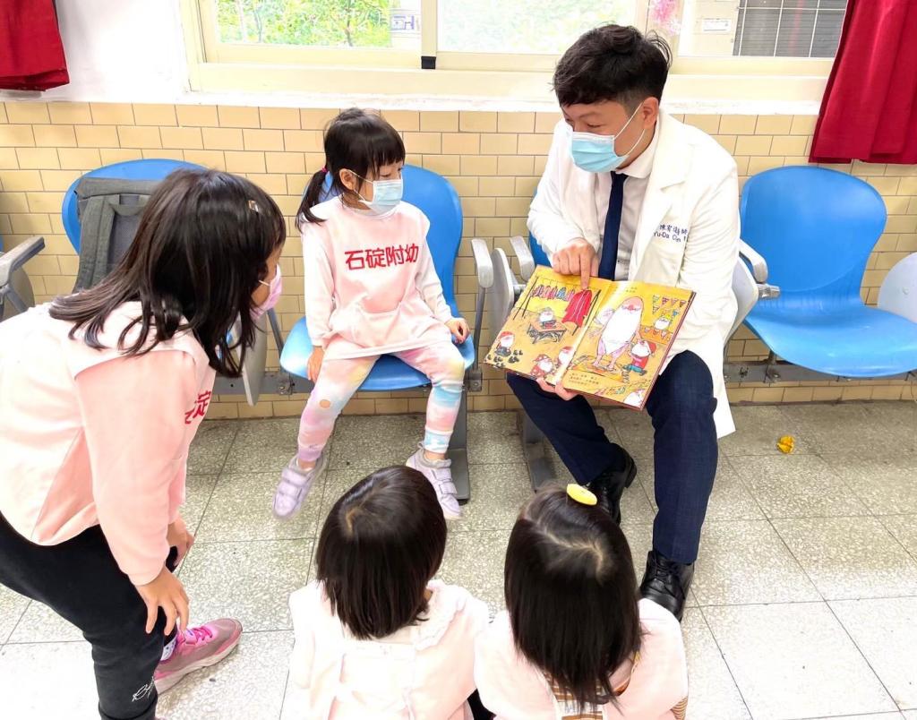 圖說:陳宥達醫師帶領醫療團隊前往偏鄉幼兒園進行團體共讀衛教活動(圖 陳宥達醫師提供)
