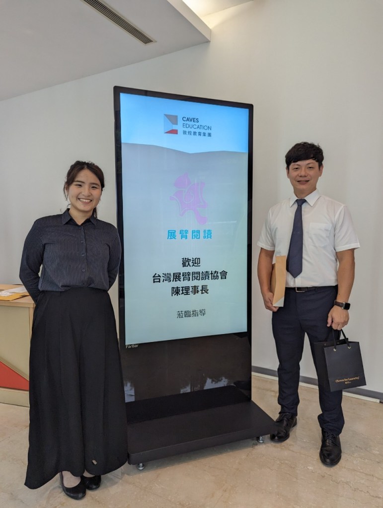 陳宥達理事長近日親臨充滿文化氛圍的敦煌總部,受到了Tina協理和Michelle的熱情接待與介紹。在這次的交流中,我們發現展臂閱讀與敦煌教育擁有共同的理念與熱忱,都致力於兒童教育,並擔起社會責任。