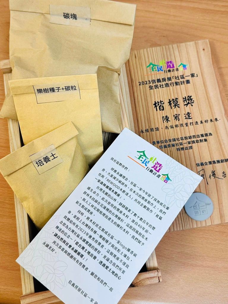 恭喜陳宥達醫師再度榮獲肯定 2023信義房屋全民社造計畫楷模獎 「永續閱讀,為偏鄉孩童打造美好未來」 在兒童發展健康的議題上,陳醫師以多年的推廣親子共讀經驗為基礎,特別在偏遠地區與高風險家庭中實踐ROR模式,從外展服務、適齡童書募集、專業人員培訓到社區親子講座,用專業醫療照護改變一生的健康。 這次獲獎的木盒非常有特色,以柳杉木料製成,內含一包欒樹種子和碳粒土壤包。這象徵著永續的理念,激勵我們如同樹木一般,將親子共讀的種子散播在更多偏鄉 實現孩童醫療與教育的平等,攜手共創社區永續未來。 分享此文: 按一下即可分享至 X(在新視窗中開啟) X 按一下以分享至 Facebook(在新視窗中開啟) Facebook 喜歡 正在載入... 相關 發表者:社團法人台灣展臂閱讀協會 檢視 社團法人台灣展臂閱讀協會 的所有文章