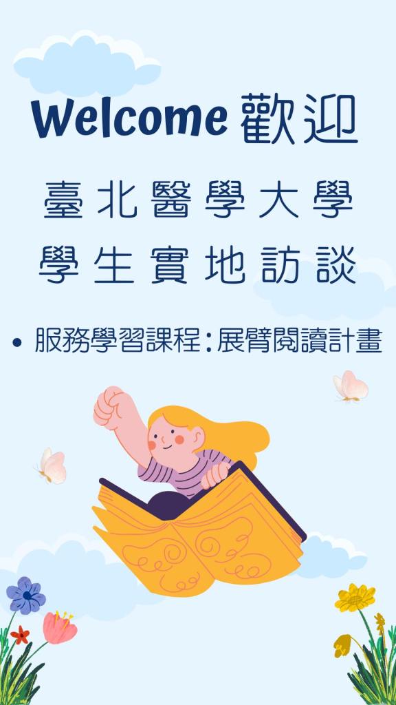 展臂閱讀已連續四年在臺北醫學大學開設服務學習課程,指導老師陳宥達醫師將Reach Out and Read模式在通識教育中讓更多除了醫學系以外的學生參與。