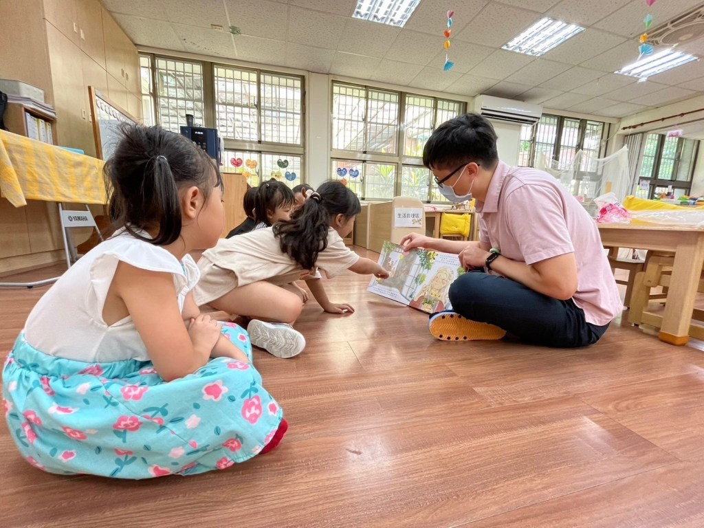 參與這次服務的劉醫師分享這次運用統一超商好鄰居文教基金會提供的《紙能給你好森活》手掌繪本,依照繪本中畫面教導小朋友如何在生活中做好節約用紙,保護我們的森林與地球!發現和小朋友互動沒有想像中容易,還好有老師從旁協助,利用搶答、模仿等增加小朋友對內容的理解。