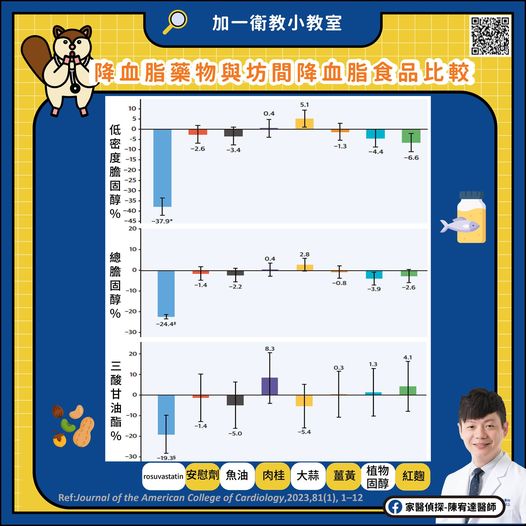 而最近火紅的是”紅麴”,市面上也有許多紅麴相關製品例如餅乾、保健品,而近日小林製藥風波讓民眾開始關注紅麴製品的安全問題,那麼究竟坊間種號稱降血脂的食品有什麼有什麼差異?今日#宥達醫師分享2022年發表在美國心臟病學會雜誌(JACC)的圖表,就帶大家一同揭密!