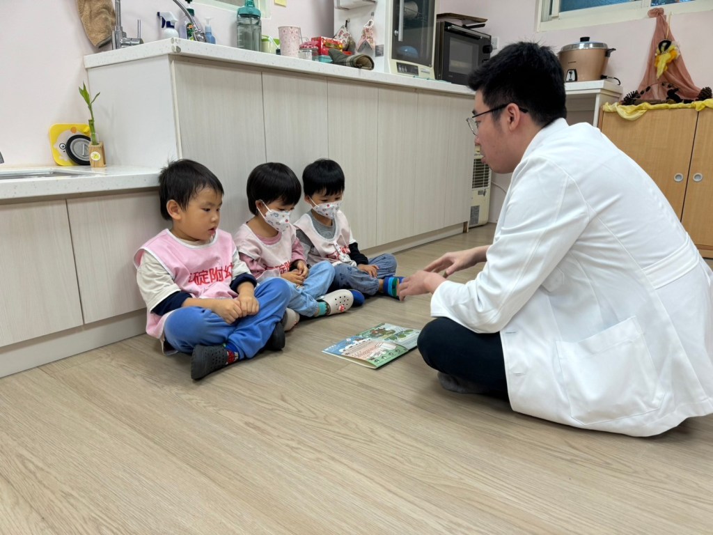 線上服務活動結束後,我們持續前進偏鄉服務,醫療人員與志工來到石碇國小附設幼兒園與石碇衛生所,帶來了實體的團體共讀活動。這些結合醫療與教育的故事時光,不僅讓孩子們在歡樂中增進了語言能力與思考表達,更讓醫師們深刻感受到醫療教育的多樣性與影響力。