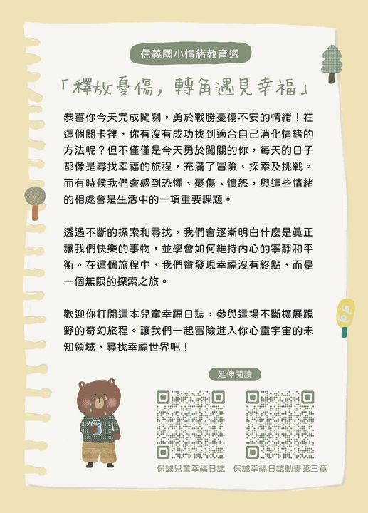 透過志工的陪伴與引導,學生不僅學會了情緒管理的方法,也增進了自我肯定與解壓的能力。這次情緒週活動,讓閱讀與幸福教育融入生活,激發學生的潛能,培養面對挑戰的正向態度。