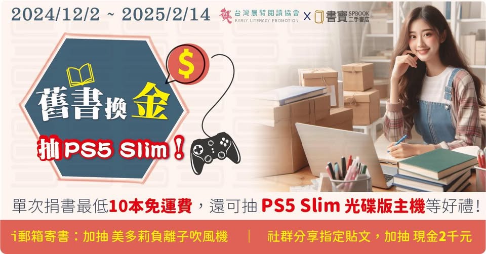 透過參與 書寶二手書店 的【舊書換金,『益』同前行】活動,讓你不需要的書籍找到新生命,同時支持 展臂閱讀協會 推廣的親子共讀與偏鄉閱讀計畫!