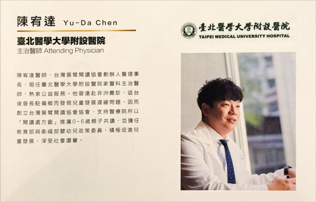 陳宥達醫師,台灣展臂閱讀協會創辦人暨理事長,現任臺北醫學大學附設醫院家醫科主治醫