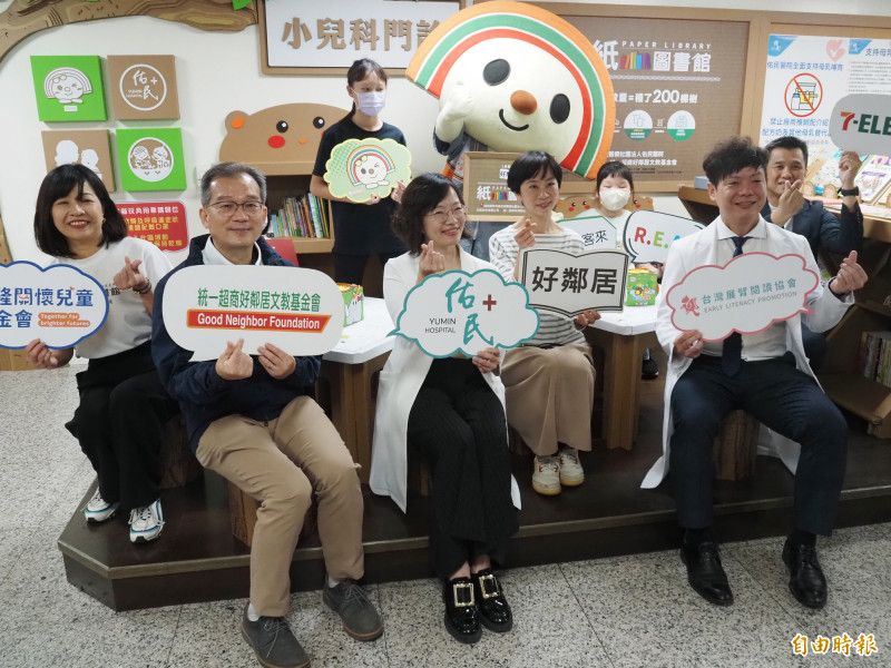 統一超商好鄰居文教基金會設置第7座紙圖書館,11日在佑民醫院啟用,這也是首座設在醫院的好鄰居紙圖書館。(記者陳鳳麗攝)