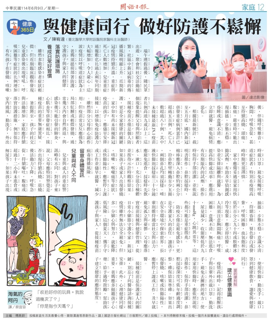 防疫不是一時的應變,而是長期的生活態度。讓我們一起把「防護」內化為日常,才能從容面對下一波疫情或其他傳染病挑戰!