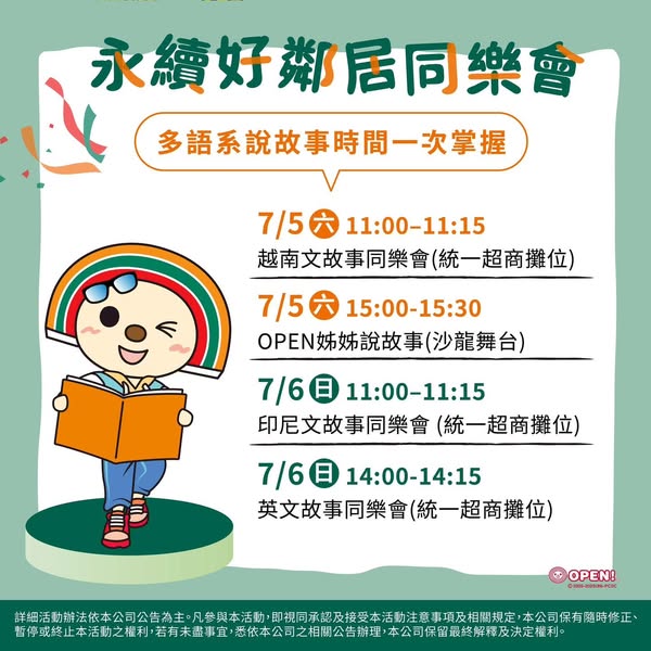 這個夏天,展臂閱讀與統一超商好鄰居文教基金會攜手合作,將多語言繪本故事帶進松菸文創園區!