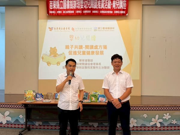 在苗栗縣立圖書館舉辦的「親子共讀—閱讀處方箋促進兒童健康發展」講座中,展臂閱讀理事長 陳宥達醫師 從醫學與兒童發展的角度,帶領家長重新認識「共讀」的力量。