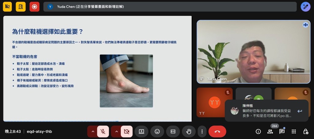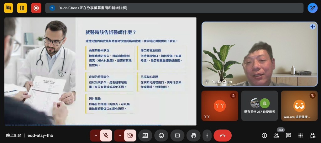 這次宥達醫師受邀分享「失智x糖尿病足」的健康照護課程,超過260位民眾熱情參與。