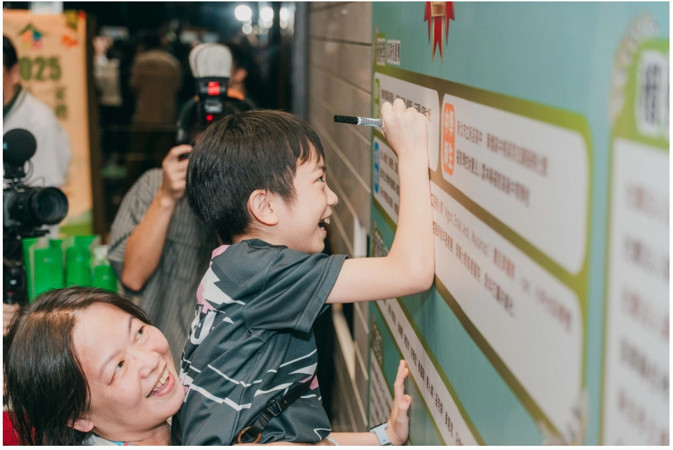 來自三玉國小的獲獎學童興奮地在獲獎公佈欄上,簽上自己的名字,證明任何年紀都能為社區盡一份力。