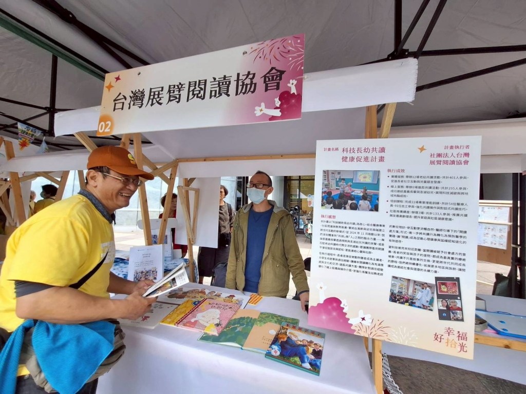 這次在【幸福好拾光】市集,我們帶著一年來的「科技長幼共讀健康促進計畫」成果,和民眾一起用繪本重新看見世代間的溫度。