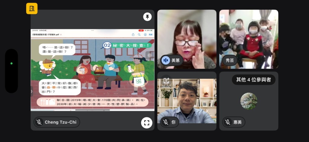 有人踴躍回答、有的人靜靜聆聽,也有孩子從繪本圖片中提出充滿想像力的問題,讓線上空間依然充滿笑聲與溫度。