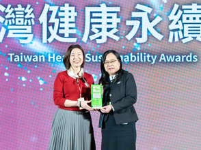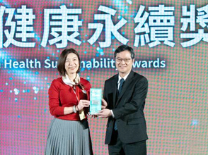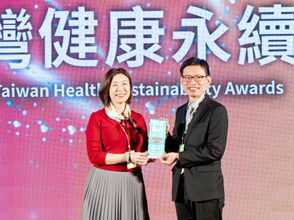 由衛生福利部林靜儀政務次長頒發「台灣永續績優醫院獎」獎座,雙和醫院由蔡淑暖副院長代表受獎