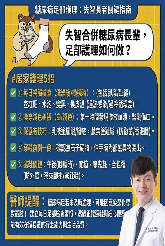 最近受邀WaCare 授課分享失智合併糖尿病的長輩,常因神經病變導致「腳麻無感」,加上表達困難,極易忽略足部傷口而面臨截肢風險。