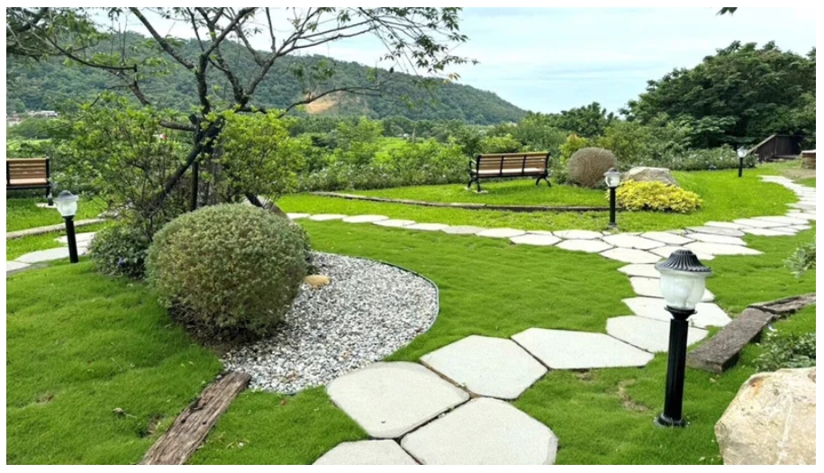 亞洲健康智慧園區景觀庭園,空氣清新、視野開闊。蘇大成、陳宥達兩位醫師皆提及,完善的綠地規劃能鼓勵長者多出門活動,有益健康。 圖/亞洲健康智慧園區提供